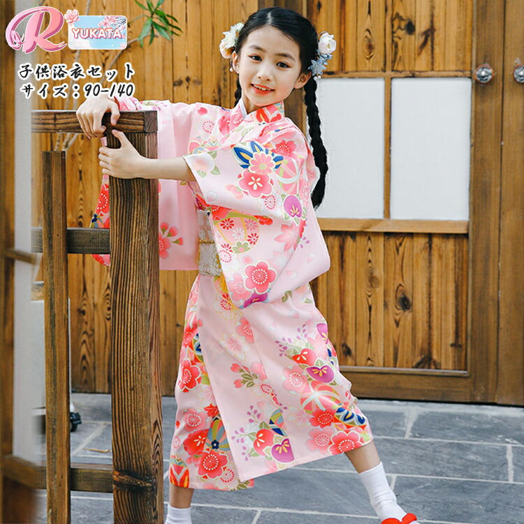 浴衣 子供 女の子 130 浴衣 セット ゆかた 水色 桜 花柄 桜色 浴衣 女の子 可愛い ゆかた ピンク ワンピース 浴衣 お祭り 旅行 かわいい ゆかた