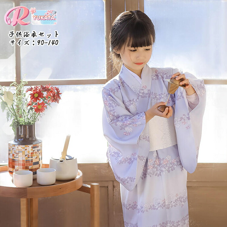 浴衣 子供 女の子 130 浴衣 セット ゆかた 紫 桜 花柄 浴衣 女の子 可愛い ゆかた ワンピース 浴衣 お祭り 旅行 かわいい ゆかた
