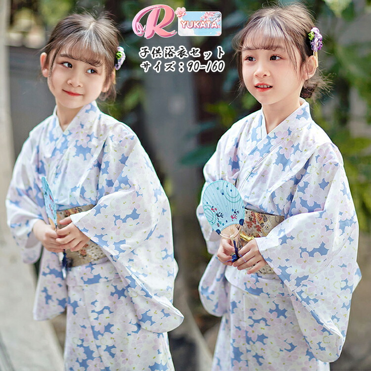 浴衣 子供 女の子 130 浴衣 セット ゆかた 水色 桜 花柄 桜色 浴衣 女の子 可愛い ゆかた ピンク ワンピース 浴衣 お祭り 旅行 かわいい ゆかた
