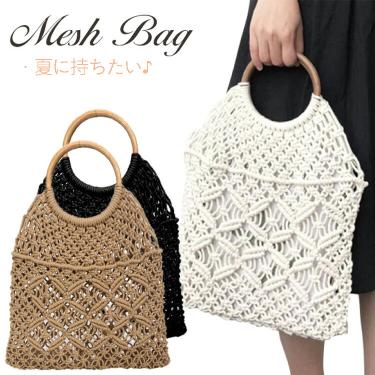 ネットバッグ 網バッグ メッシュバッグ 手提げ 編みバッグ カゴバッグ ストローバッグ ナチュラル トートバッグ レディース ウッド 透かし編み 春 夏 可愛い カーキ ベージュ おしゃれ