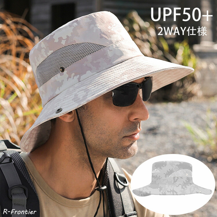 メンズ uv 帽子 大きいサイズ 迷彩 メッシュ サファリハット アウトドア 2WAY仕様 畳める 父の日 ギフト 折りたたみ 紐付き バケットハット 釣り 旅行