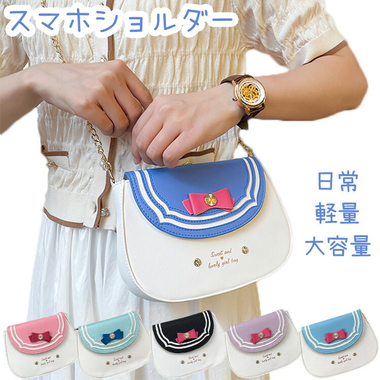 スマホショルダー 肩掛け レース 白 jkバック PU 財布 女の子 高校生 中学生 セーラー服 斜め掛け ブラック 黒 紫 制服