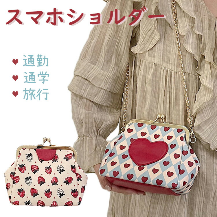 スマホショルダー バッグ スマホポーチ 可愛い ハート イチゴ レディース 携帯バック チェーン スマホケース 財布 斜め掛け