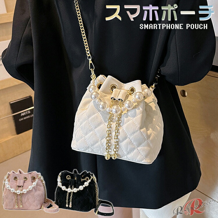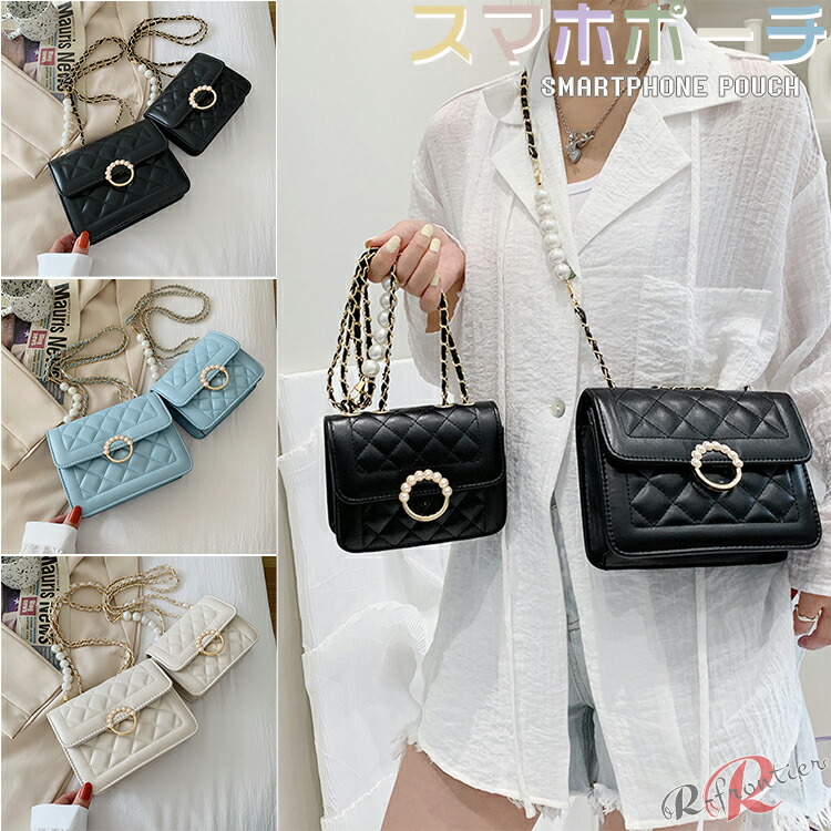 スマホポーチ パール バッグ レディース キラキラ 携帯バック チェック 可愛い チェーン 黒 白 グリーン 財布 斜め掛け