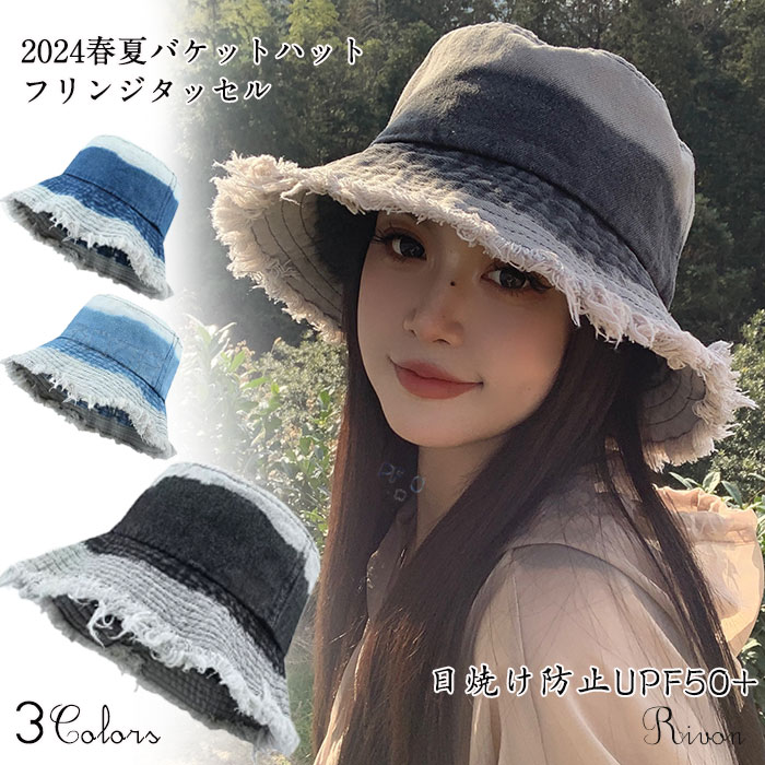 2024春夏帽子 デニム フリンジバケットハット フリンジ ハット バケットハット 日焼け防止 柔らかく、軽量で快適です