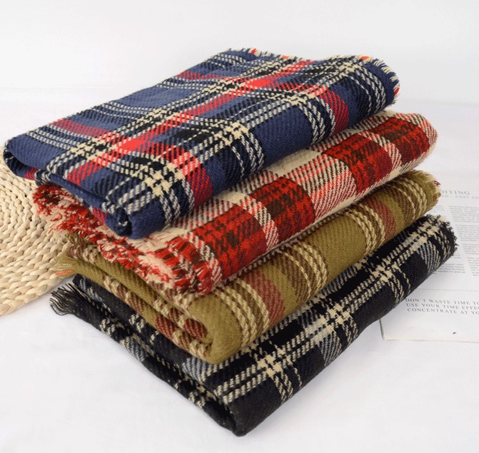 チェックマフラー4色レディースメンズガールズ長めかわいいおしゃれ韓国ファッション赤レッド白ホワイト黒ブラックネイビーグリーン千鳥柄ストール青学生厚手大判チクチクしないタータンフリンジカラバリ柄