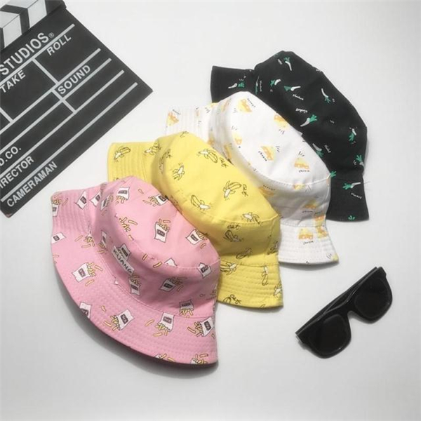 総柄バケットハット4色ハット帽子カラフルプリントダンス衣装ヒップホップレディースメンズガールズストリート個性的奇抜派手可愛いおしゃれかっこいい韓国原宿ロゴチーズポテトバナナ深い深め