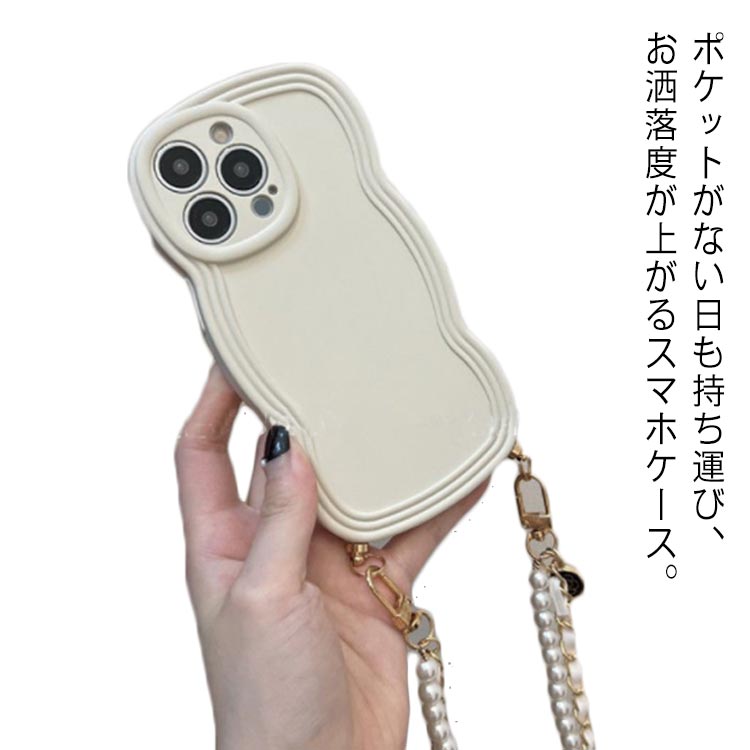 iPhoneケース クリア 透明ショルダー うねうね なみなみ iphone14 iphone13pro