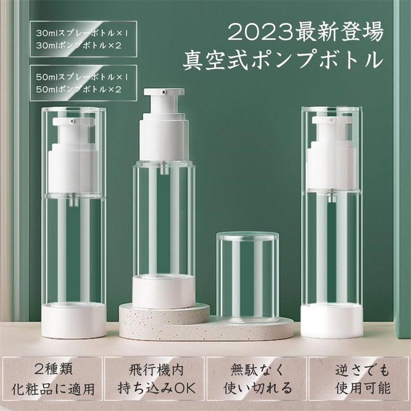 トラベルボトル 小分けボトル 詰め替えボトル 旅行用 便利グッズ シャンプーボトル トラベルセット 化粧品用 漏れ防止 真空ポンプボトル スプレーボトル*1ポンプボトル*2 液体用 乳液用