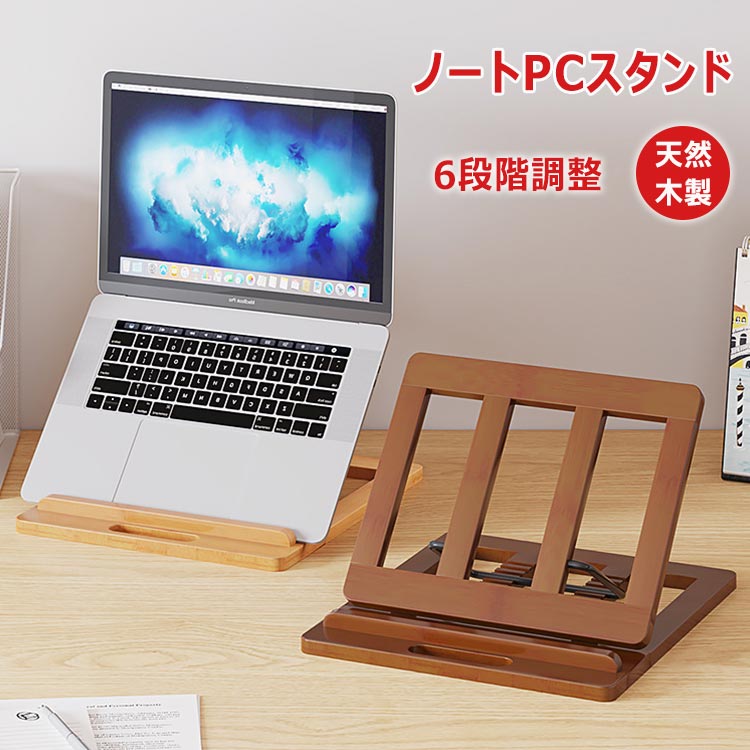 ノートパソコンスタンド 竹製 pcスタンド タブレット 角度調整 猫背解消 木目調 スタンド ブックスタンド 書見台 倒れない 人間工学 卓上 料理本 木製 学習台 楽譜スタンド 折りたたみ式 放熱対