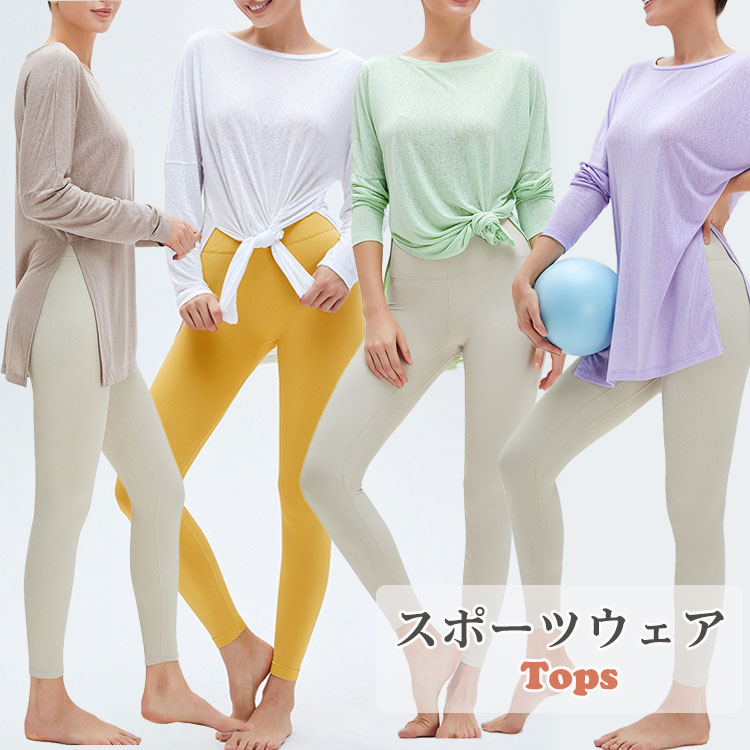 レディース 長袖 ヨガウェア ピラティス トップス スポーツウェア トレーニングウェア ダンス バレエ 部屋着 Tシャツ ロング丈 人気 おすすめ おしゃれ ファッション ゆったり S M L スウェ