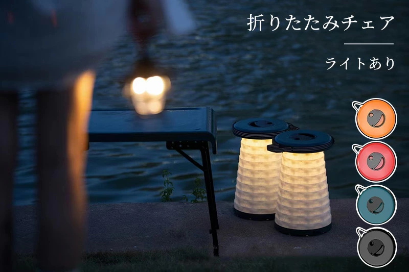 折りたたみチェア 屋内外用 収納式スツール 折りたたみ キャンプチェア 3つの照明モード キャンプ用スツール 軽量コンパクト 調節可能 ストラップ 持ち運び簡単 屋内用 リビングスツール
