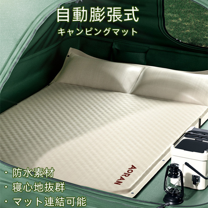 キャンピングマット エアーマット エアピロー付 自動膨張式 アウトドア 簡単 連結可能タイプ 収納便利