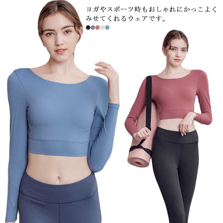 ヨガウェア トップス 長袖 レディース カップ付き バックライン スポーツウェア レディース ヨガ ダンス ランニング フィットネス ブラトップ ピラティス