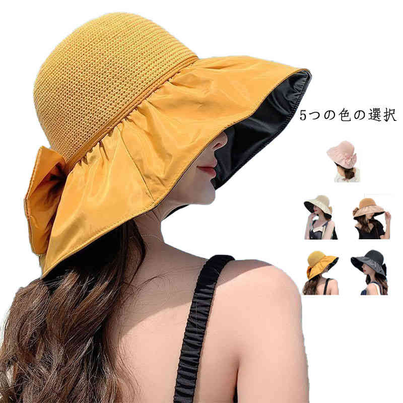 ペーパーハット 折りたたみ 紫外線対策 つば広 小顔効果 日焼け止め ハット リボン シンプル 可愛い UV対策