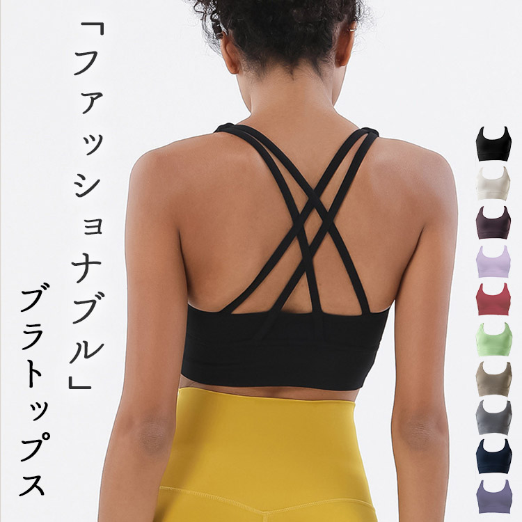 クロスストラッピーがヘルシーな魅せ方に、体の負担も小さめ ヨガトップス ヨガウエア 女性 スポブラ バックデザイン トレーニング ランニング 練習 シンプル 春 夏 秋 冬
