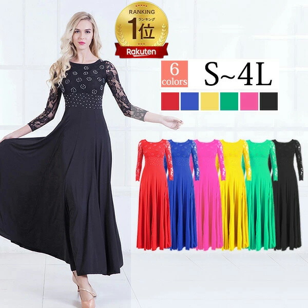 社交ダンスドレス 広がる裾 競技用ドレス ダンス衣装 ダンスウェア ステージ衣装 大きいサイズ カラオケ スタンダード ドレス ワルツ ワンピースドレス