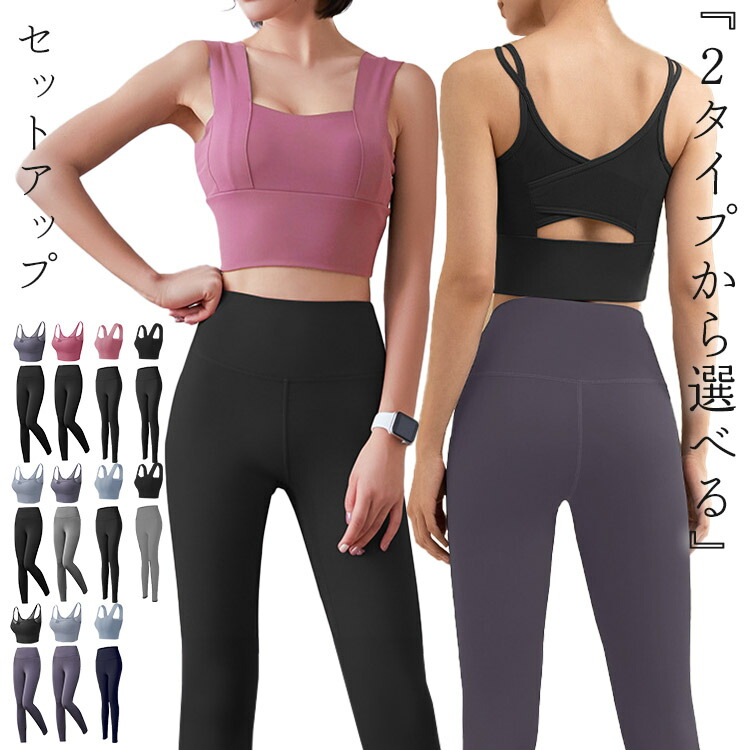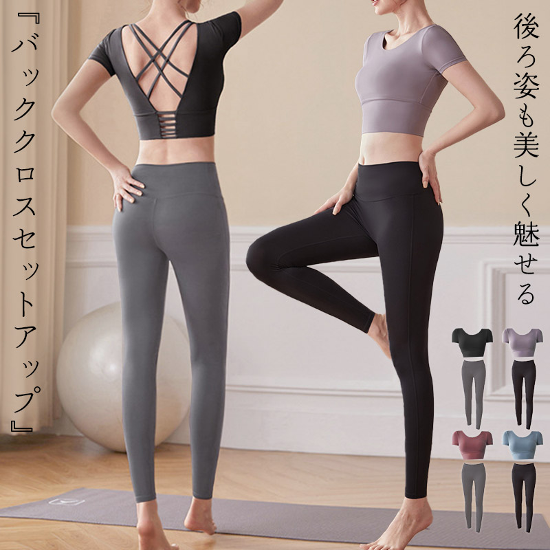 バッククロスで背中美人♪すぐに始まられる上下セットアップ ヨガ 上下 セット フィットネスウェア トレーニングウェア 女性 ホットヨガ ピラティス ダンス トレーニング