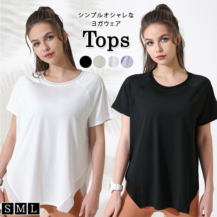 ヨガ トップス ヨガTシャツ 女性 プルオーバー シンプル ブラック ストレッチ スポーツウェア オールシーズン