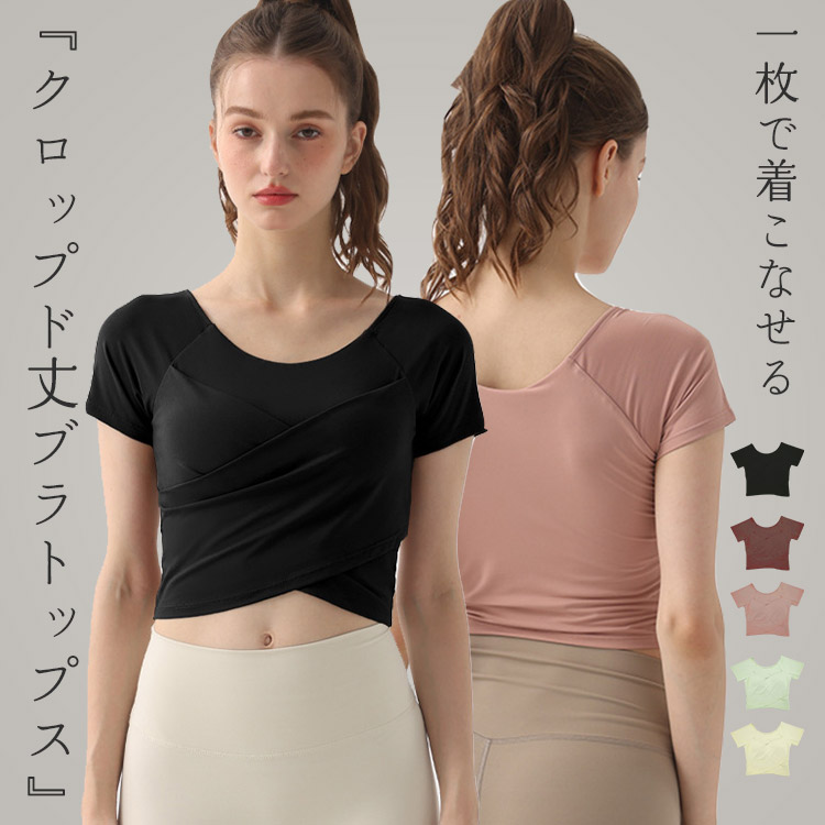 スポーツウェア ヨガ フィットネスウェア Tシャツ 短め 女性 動きやすい 伸縮性 くすみカラースポーツ アウトドア ヨガ ピラティス ウェア トップス