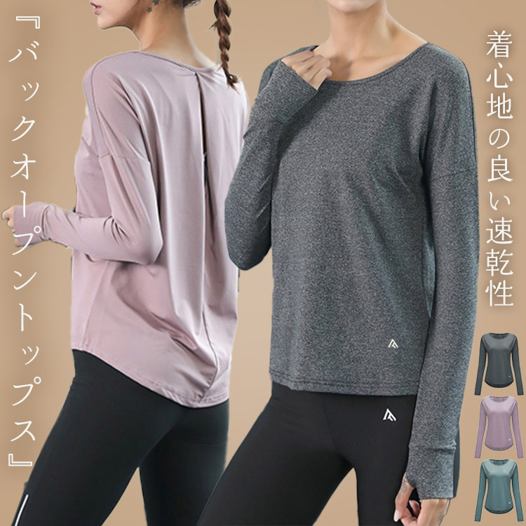 ヨガトップス ヨガTシャツ 女性 プルオーバー サムホール 長そで シンプル 裾 ロゴ スポーツウェア オールシーズン