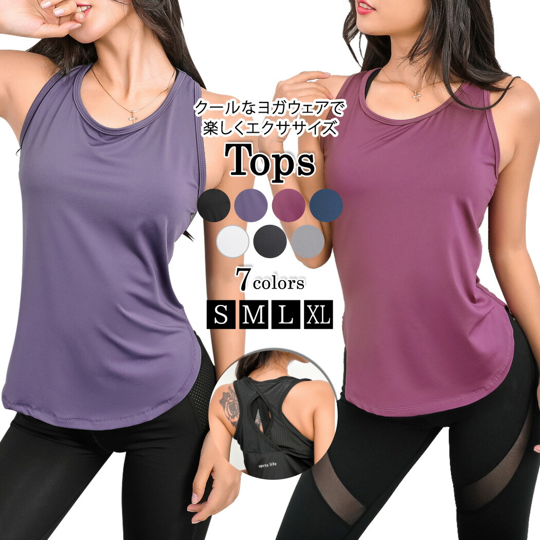 バッククロスやアンダーリブでより柔軟性を高める ヨガトップス ヨガウエア 女性 下着 トレーニングウェア ノースリ キャミ ネック セクシー バックデザイン 幅広 リブ
