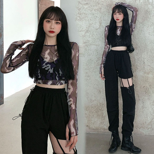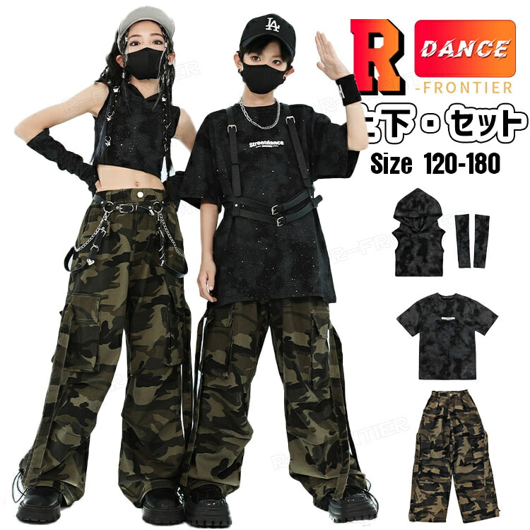 ダンス衣装 キッズ セットアップ 迷彩 カーゴパンツ 長パンツ 女の子 へそ出し ジャズダンス ユニセックス 男の子 女の子 韓国 ヒップホップ hiphop 演出服 応援団 練習着 120-180c