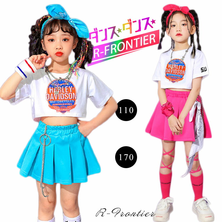 チアダンス衣装 キッズ 女の子 へそ出し トップス 水色 スカート ローズ チアガール セットアップ ヒップホップ キッズダンス衣装 上下セット 子供 HIPHOP 韓国 k-pop衣装 110-17