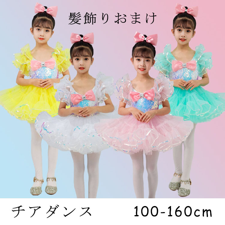 キッズ チアダンス衣装 女の子 子供用 ワンピース スパンコール ピンク ダンス衣装 チュチュスカート ジュニア ダンス衣装 イベント セットアップ イベント100 110 120 130 140 1