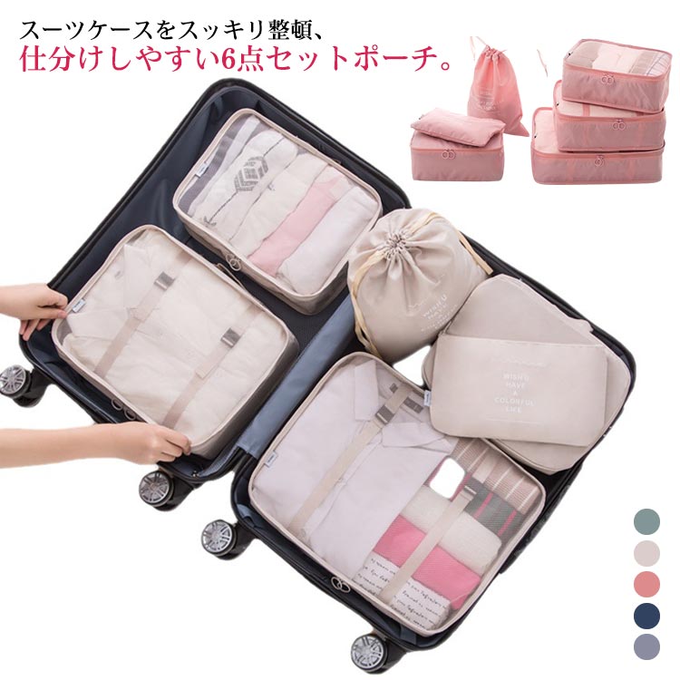 セット トラベルポーチ 旅行用品 衣類収納ポーチ 6点セット 選べる5色 スーツケース キャリーケース 収納袋
