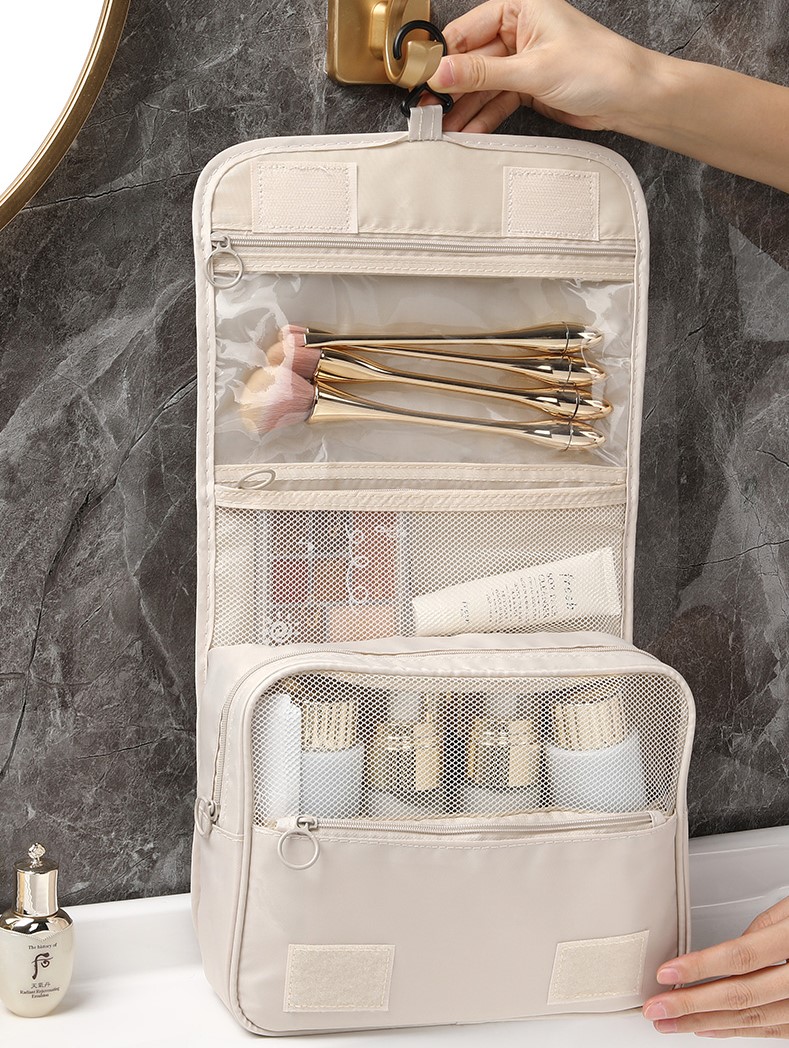 トラベルポーチ大容量洗面用具吊り下げ化粧ポーチシンプルベージュ白ホワイトおしゃれかわいい韓国旅行ケース小物入れ収納化粧品メイクメッシュポーチメイクブラシコンパクト洗面用具壁掛け旅行用品ブラシ入れ