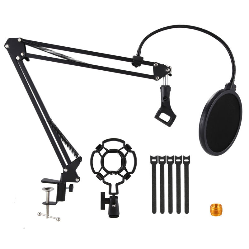 マイクスタンド マイクアーム コンデンサーマイク用 ダイナミックマイク用 伸縮 金属製 卓上マスタンド デスクアーム 収録 配信 実況 カラオケ ポップガード 変換アダプタ付き