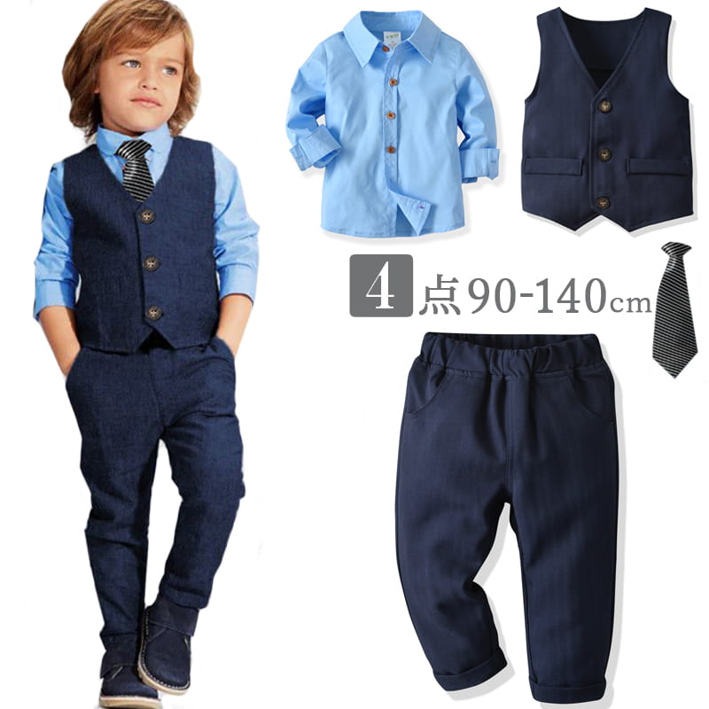 子供服 フォーマル 男の子 スーツ ズボン ベスト セット シャツ ネクタイ キッズスーツ フォーマルスーツ セットアップ 秋服 入園 卒園 ピアノ発表会 結婚式 お祝い お宮参り セレモニー 七五三