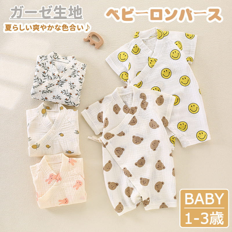 ベビー甚平 半袖 夏 男の子 女の子 ベビーロンパース 浴衣 前開き カバーオール 綿 ガーゼ 可愛い キッズ服 夏服 ベビー 赤ちゃん 部屋着 かわいい おしゃれ パジャマ 夏祭り 花火大会 生産祝