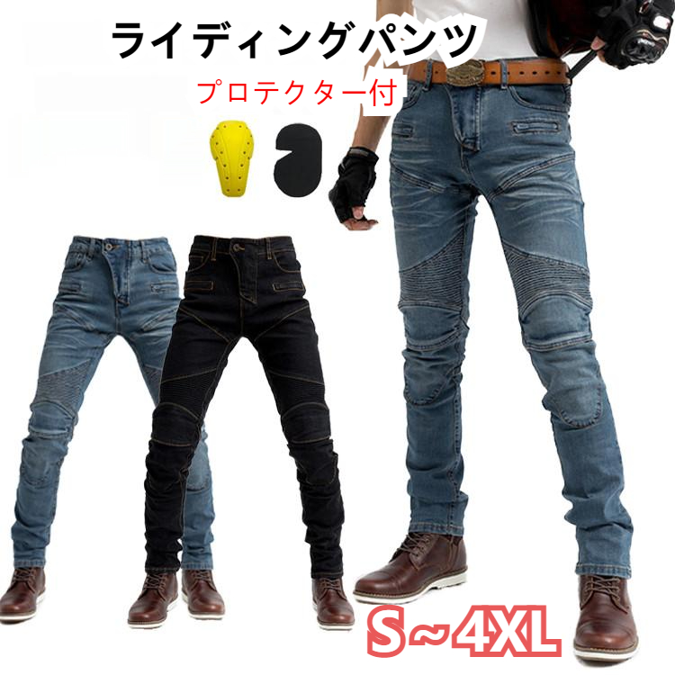 ライダーパンツ メンズ プロテクター付き デニムパンツ バイクパンツ メンズバイクパンツ 耐磨 通気性優れ オールシーズン ライディングパンストレッチ素材 バイク用ジーンズ 春夏秋冬