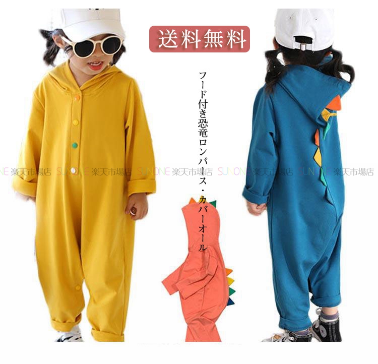 恐竜ロンパース ベビー 赤ちゃん 子供服 ベビー服 ロンパース カバーオール 恐竜 恐竜柄 男の子 女の子 長袖 春 春物 秋 秋物 秋冬 かわいい なりきり 変身