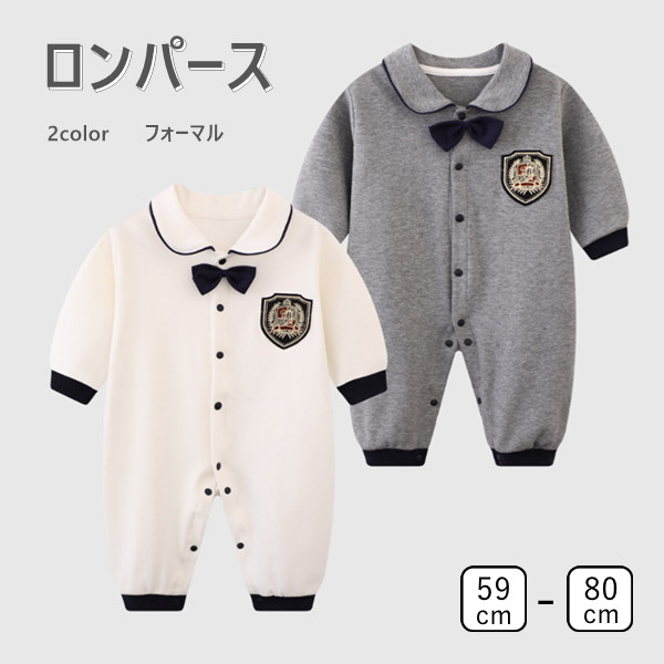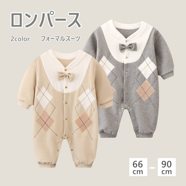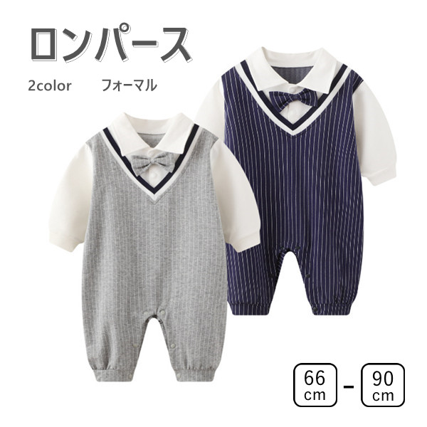 ベビー ロンパース 子供服 男の子 フォーマル スーツ ベビー服 カバーオール 蝶ネクタイ 赤ちゃん 長袖 コットン キッズ服 子供服 ベビーウエア おしゃれ 59-90