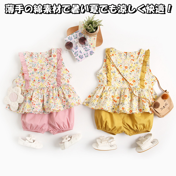 ベビー服 セットアップ ノースリーブ お出掛け 部屋着 お花 姉妹 お揃い トップス パンツ セット 上下セット 子ども服 赤ちゃん 幼児 ベビー コットン ベビーウエア かわいい おしゃれ 通園 出