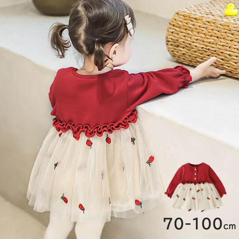 入園式 お出かけ 結婚式 フォーマル ベビードレス 長袖 ベビー ワンピース ベビー服 ベビーロンパース 幼児 女の子 66 73 80 90