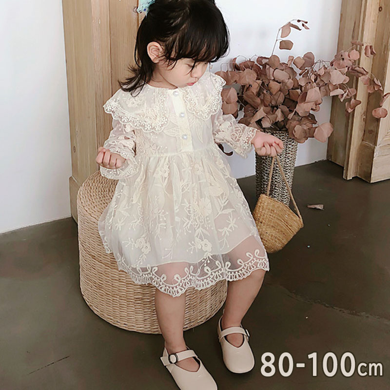 子供 ワンピース 透けレース 長袖 ベビードレス 1歳 2歳 3歳 4歳 バースデイキッズ ベビー マタニティ ベビーファッション ワンピース