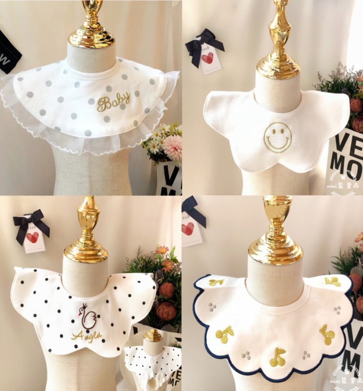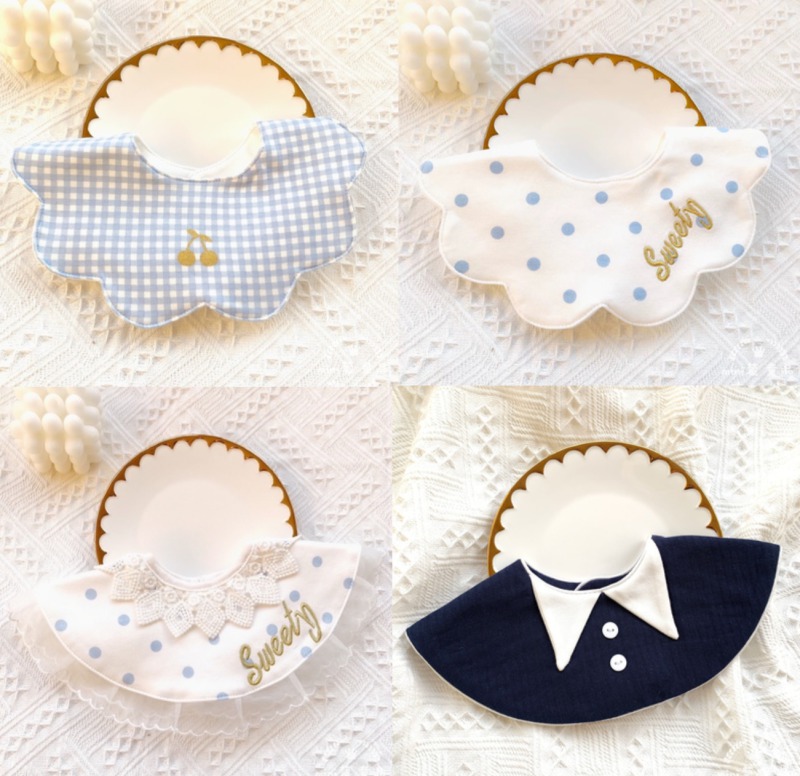 2枚セットスタイ4デザイン360型よだれかけ男の子女の子よだれかけガーゼビブかわいいおしゃれ出産祝いギフト赤ちゃん プレゼントベビー綿コットンおでかけ刺繍襟ドットレースフリルチェックボタンさくらんぼ