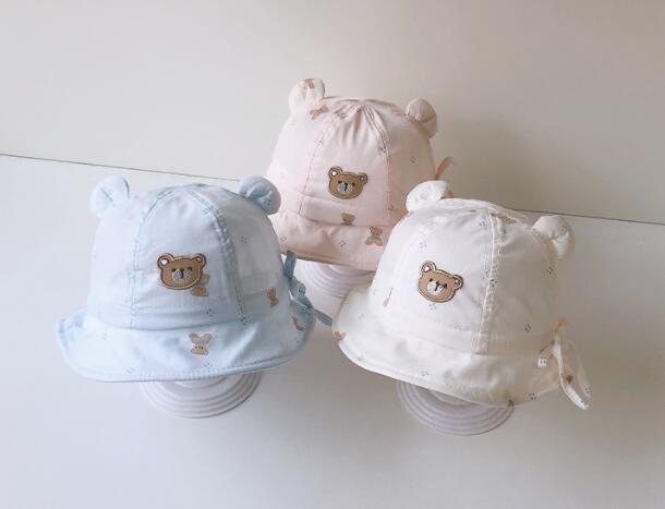 バケットハット ベビーくま赤ちゃんコットン綿100%絞りくま耳おしゃれ可愛い韓国0歳~2歳柔らかいキッズ日よけカジュアルナチュラルシンプルプレゼントギフトベビーハット春夏秋ハット帽子耳付き