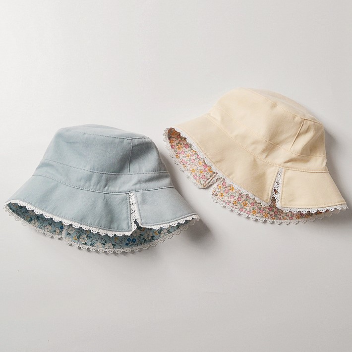 リバーシブルベビー花柄帽子赤ちゃんコットン綿ベージュブルー青ピンク水色フリルフレアレースフラワーおしゃれ可愛い韓国0歳~4歳柔らかいキッズ日よけカジュアルナチュラルベビーハットチューリップハットハット
