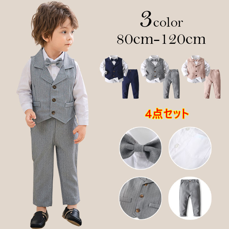 入学式 男の子 スーツ 4点セット 子供スーツ 卒業式 フォーマル スーツ キッズスーツ 小学生 シャツ+ズボン+ベスト+蝶ネクタイ こどもスーツ タキシード ジュニア 子供服 紳士服 卒園式 細身