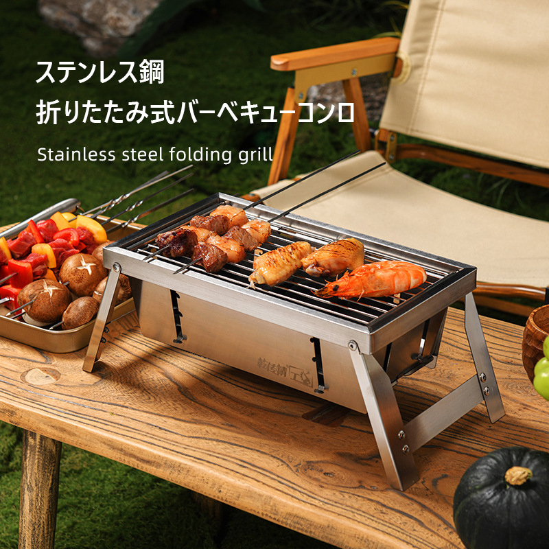 折りたたみ式 バーベキューコンロ コンパクト 焚き火台 瞬時に展開 収納:卓上 bbq コンロ ミニ バーベキューグリル 小型 bbqグリル キャンプ コンロ 炭火焼き ステンレス製