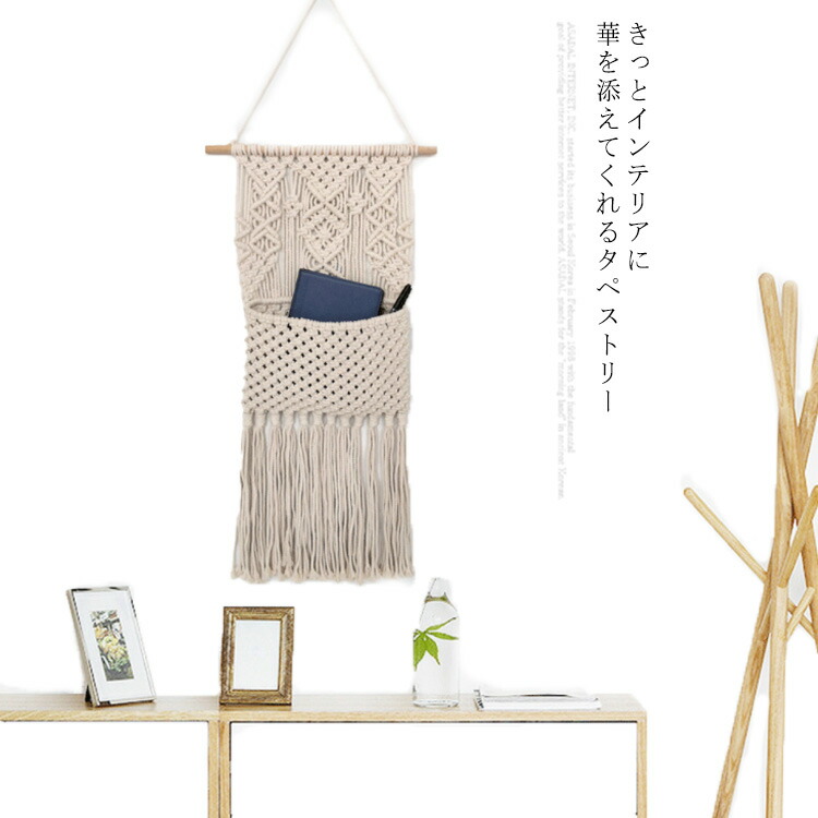 タペストリー 壁掛 吊り下げポケット マクラメタペストリー 織物 フリンジ 壁掛 収納ポケット ウォールポケット マクラメ編み