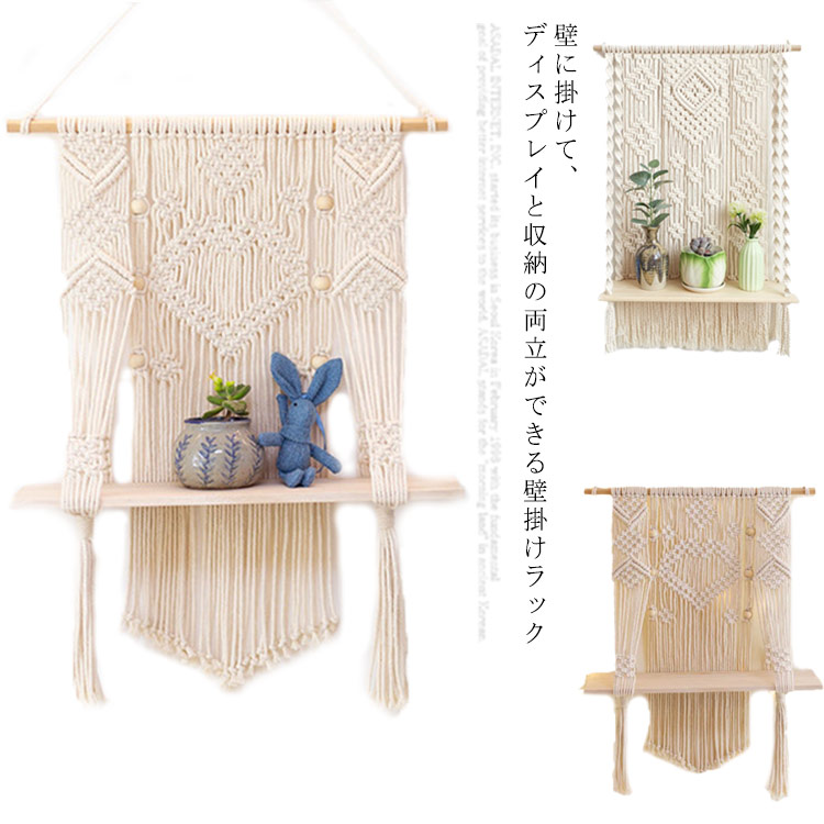 壁掛けラック 2層 1層 タペストリー マクラメ 壁掛け棚 壁飾りフリンジ 吊り下げタペストリー 織物 壁掛けスタンド マクラメ編み