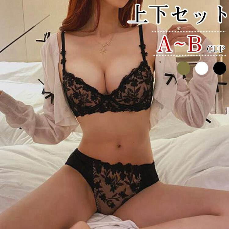 女性下着 ブラジャー ショーツ セット シースルー セクシーランジェリー レース レディース 盛りブラ