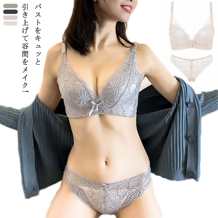ブラジャー ショーツ セット 総レース ノンワイヤーブラ 谷間 バストメイク 痛くない レディース 育乳 ブラジャー 脇高 ナイトブラ バストアップ 小胸