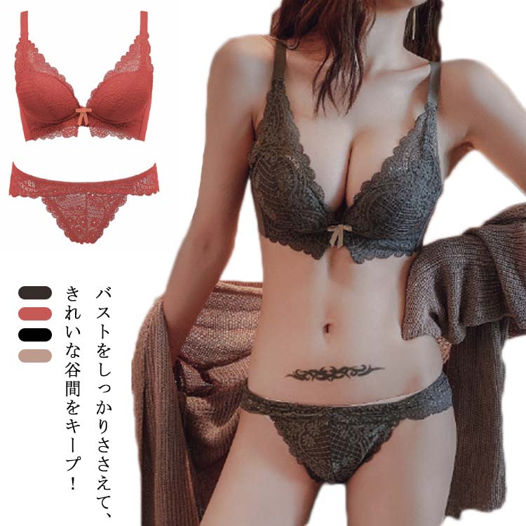 超盛り 補正ブラ レース ブラ&ショーツセット ブラ&ショーツセット ノンワイヤー 上下セット ブラジャー ランジェリー セクシー 可愛い 女性下着 ショーツ